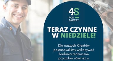 Stacja Kontroli Pojazdów 4S For Safety, otwarta również w niedziele! Zapewniamy kompleksową obsługę i prze…